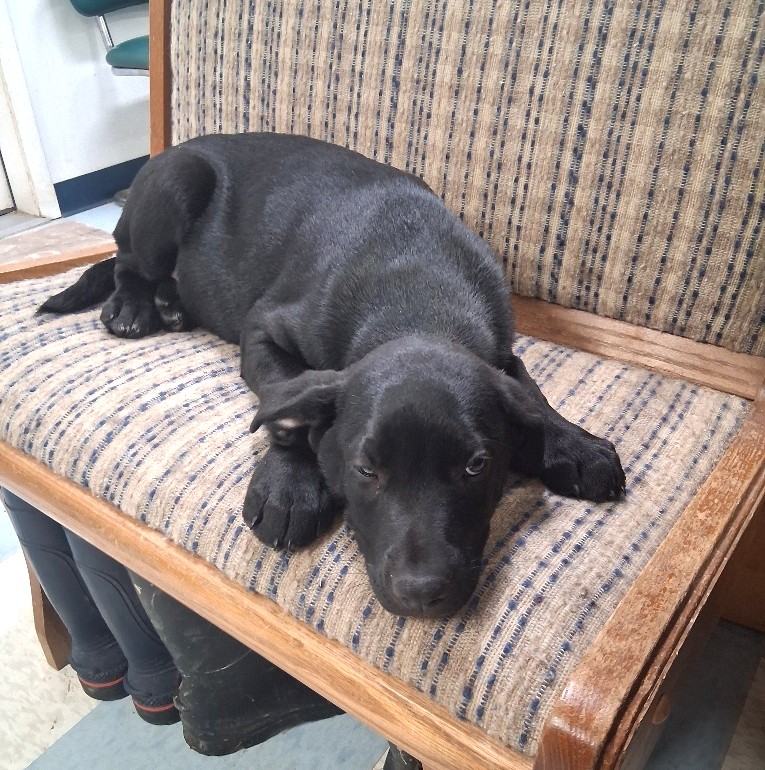 Coal has a beautiful, shiny, black coat. He is a Lab/Norwegian Elkhound/Plott mix who came into the shelter with 5 siblings. Coal was born 12/12/25 and is already 25 pounds. Judging from the size of those paws, he will be a large adult. This gentle boy can’t wait to be your next best friend.